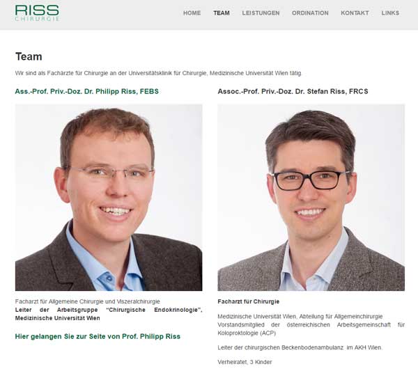 April 25, 2017Fachärzte für Chirurgie an der Universitätsklinik im AKH Wien, Wahlarzt- Ordination. Priv.-Doz. Dr. Philipp Riss Assoc.-Prof. Priv.-Doz. Dr. Stefan Riss weiter…